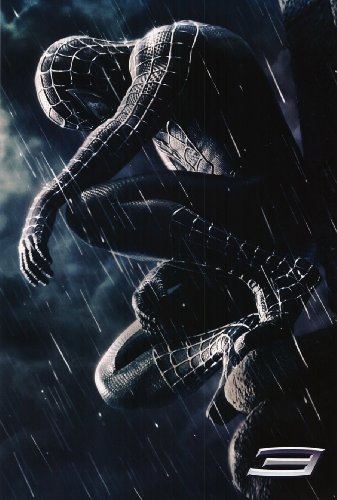 This poster shows black Spider-Man kneeling in the rain. At the bottom it says "3". This poster measures approx. 24" x 36" Spider-Man (Peter Parker) is a superhero from Marvel Comic. He has become one of the world's most popular, enduring and recognizable superheroes. He has also been in several animated and live action television series, newspaper comic strips and three successful movies starring Tobey Maguire. Abilities include stick to surfaces, superhuman strength, speed, reflexes & agility, clairvoyant "spider-sense", night vision, accelerated healing.